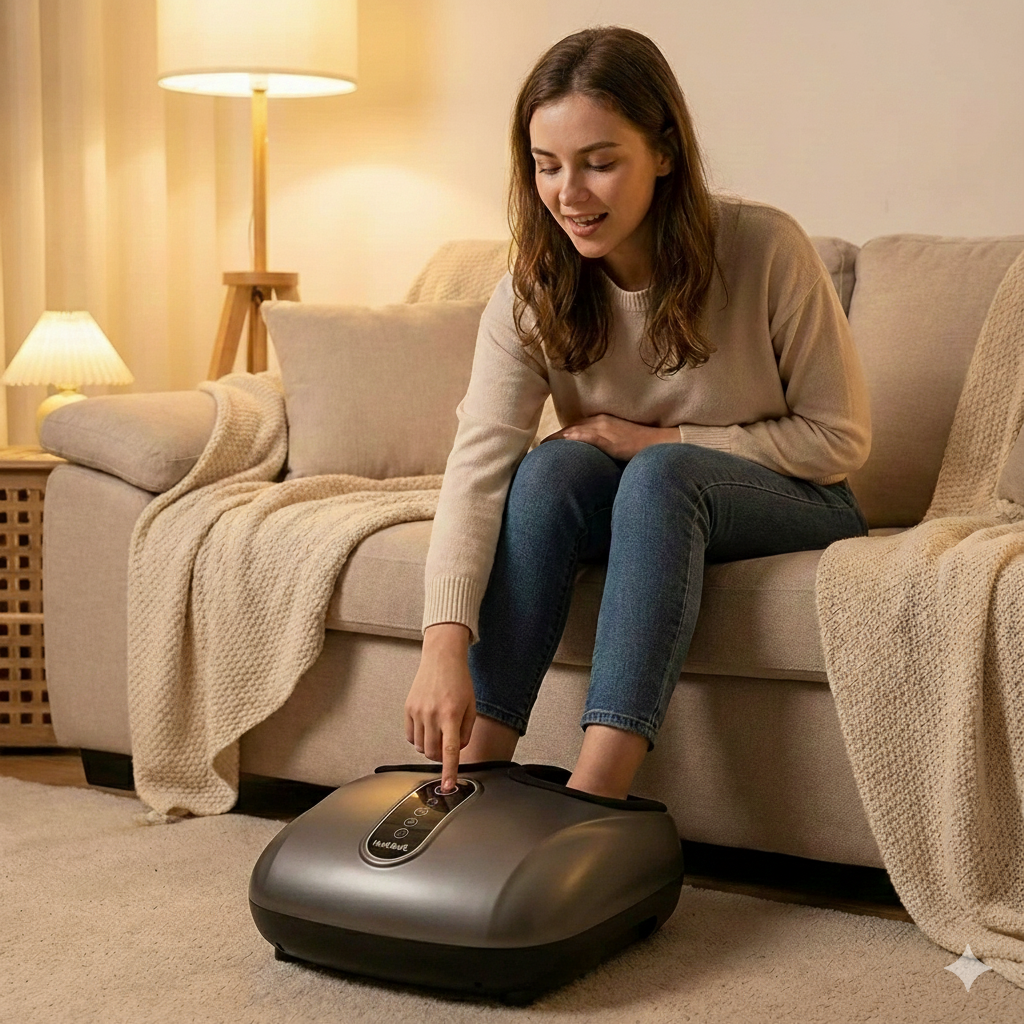 Enjoy a professional shiatsu massage at home with soothing heat and adjustable air compression. Its ergonomic design, customizable modes, and washable covers provide relaxation, improved circulation, and relief from daily fatigue. Ideal for sensitive feet or long, demanding days. ✨